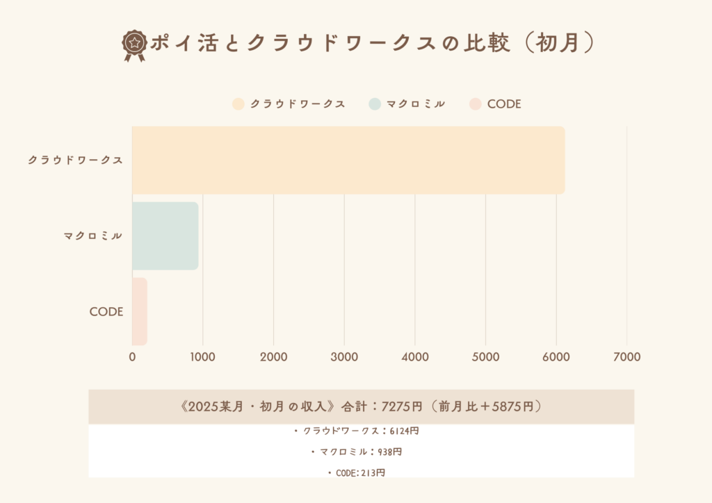 それがクラウドワークスでは、初月でなんと【6124円】の収入に!